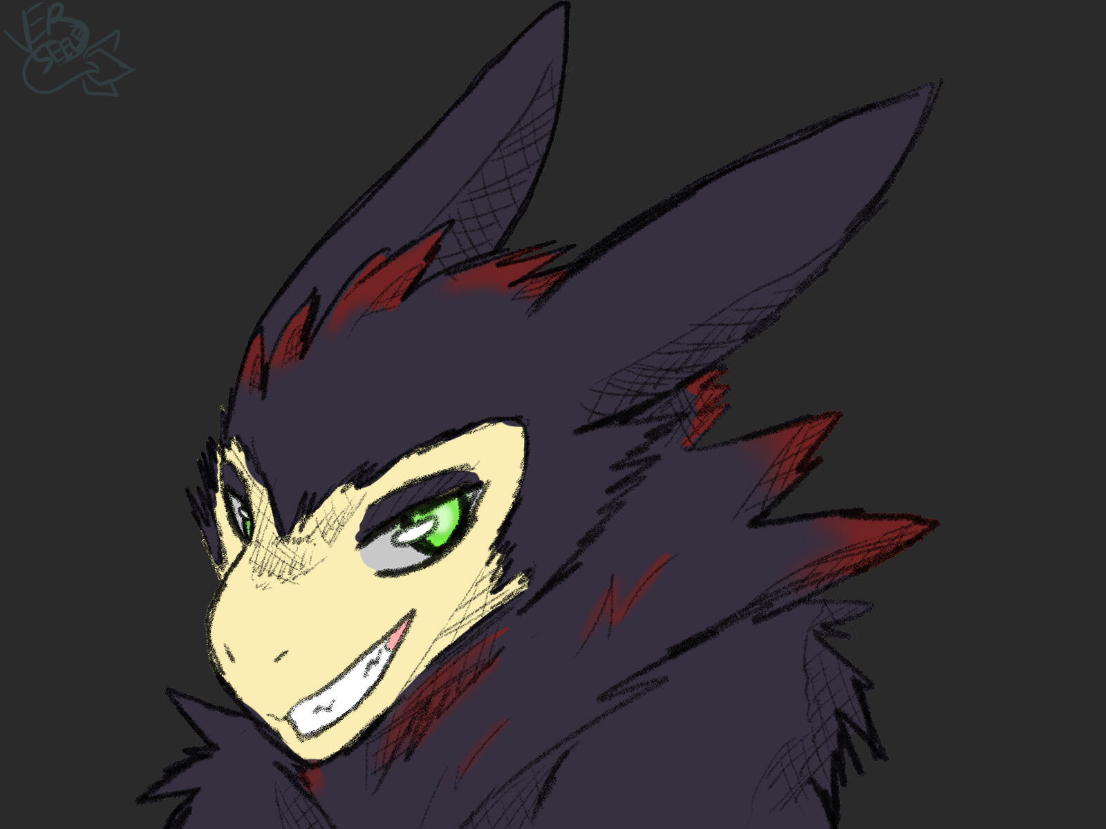 Sketch of DiscHorse, my joke fursona, by Lup (howlsnteeth)